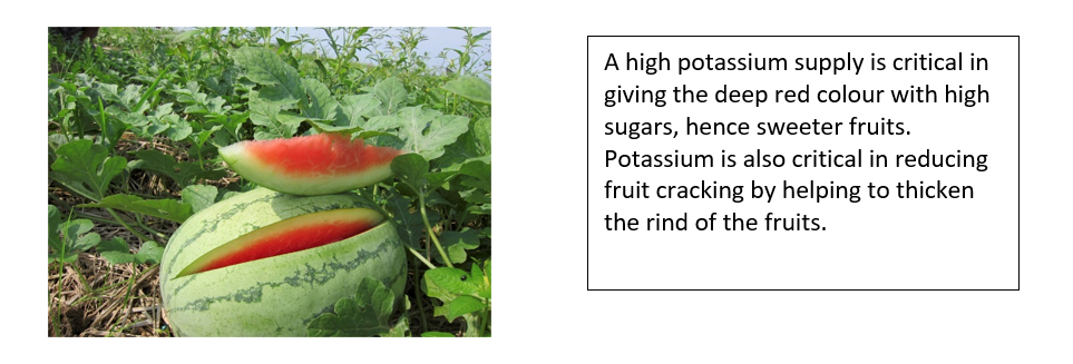 Application of fertilizers that supply a Balanced Nutrient supply giving both primary secondary and Micro-Nutrients is critical for High Yields and Quality of Melons. NPK fertilizers high in P such as UNIK 17 are important for initial crop establishment while a good N supply will ensure vigorous growth.
