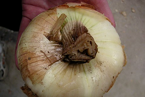 Onions are also very prone to foliar diseases and bulb rots, such as slimy or ‘sour’ outer scales, a bacterial disease that significantly reduces onion bulb quality.
