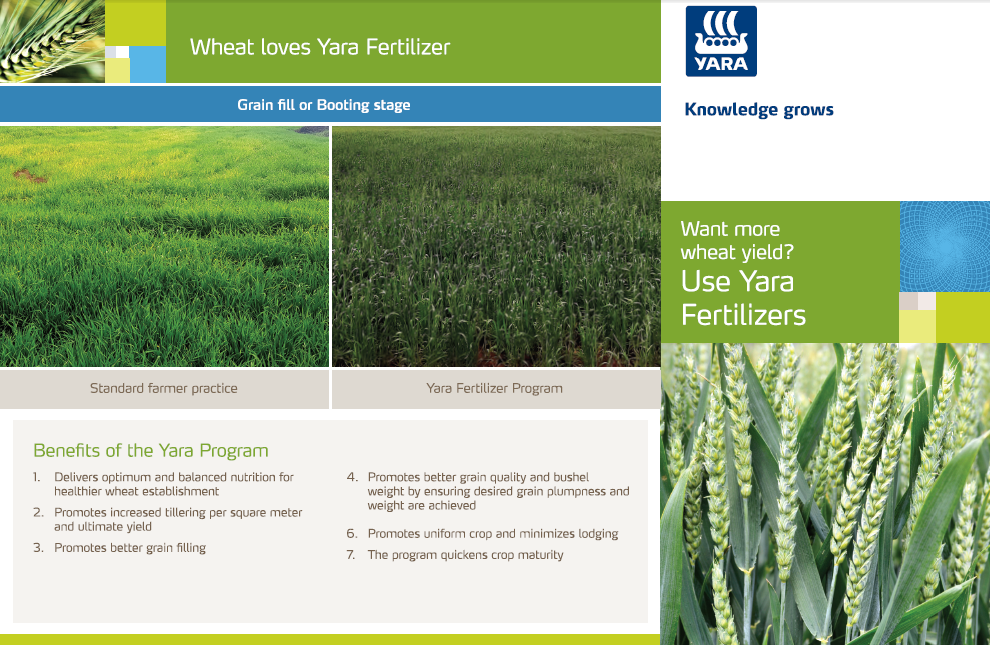 Yara's solid fertiliser and foliar programmes for wheat are based around YaraBela and YaraMila solid fertilisers and the YaraVita foliar micronutrients.