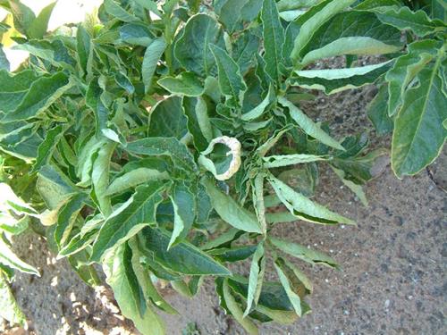 Normally potatoes are not sensitive to copper deficiency. Symptoms are seldom visible in the field.